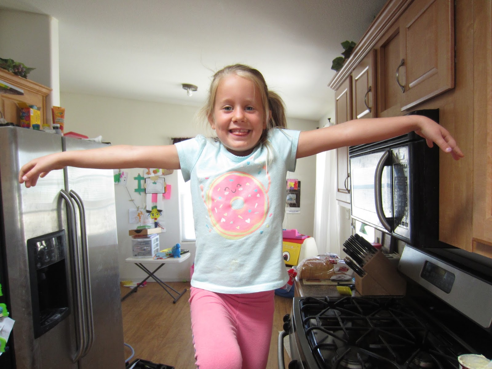 Jackson coming out of his room in the morning to see his birthday presents. He is a big six year old now!